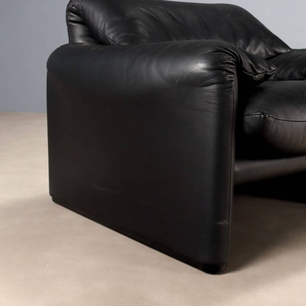 Due poltrone modello ‘Maralunga’ disegnato da Vico Magistretti e prodotta da Cassina in pelle nera. Condizioni eccelse.