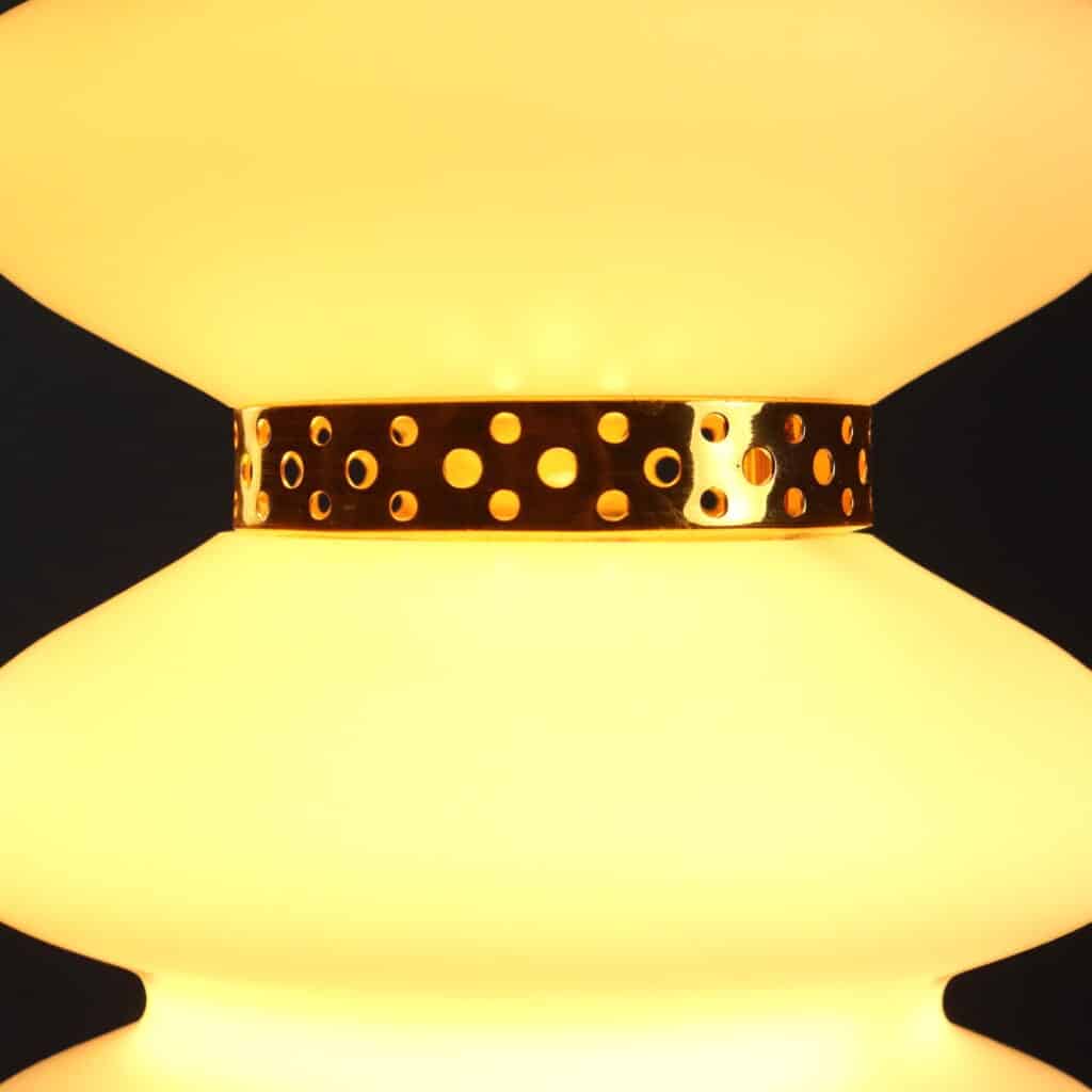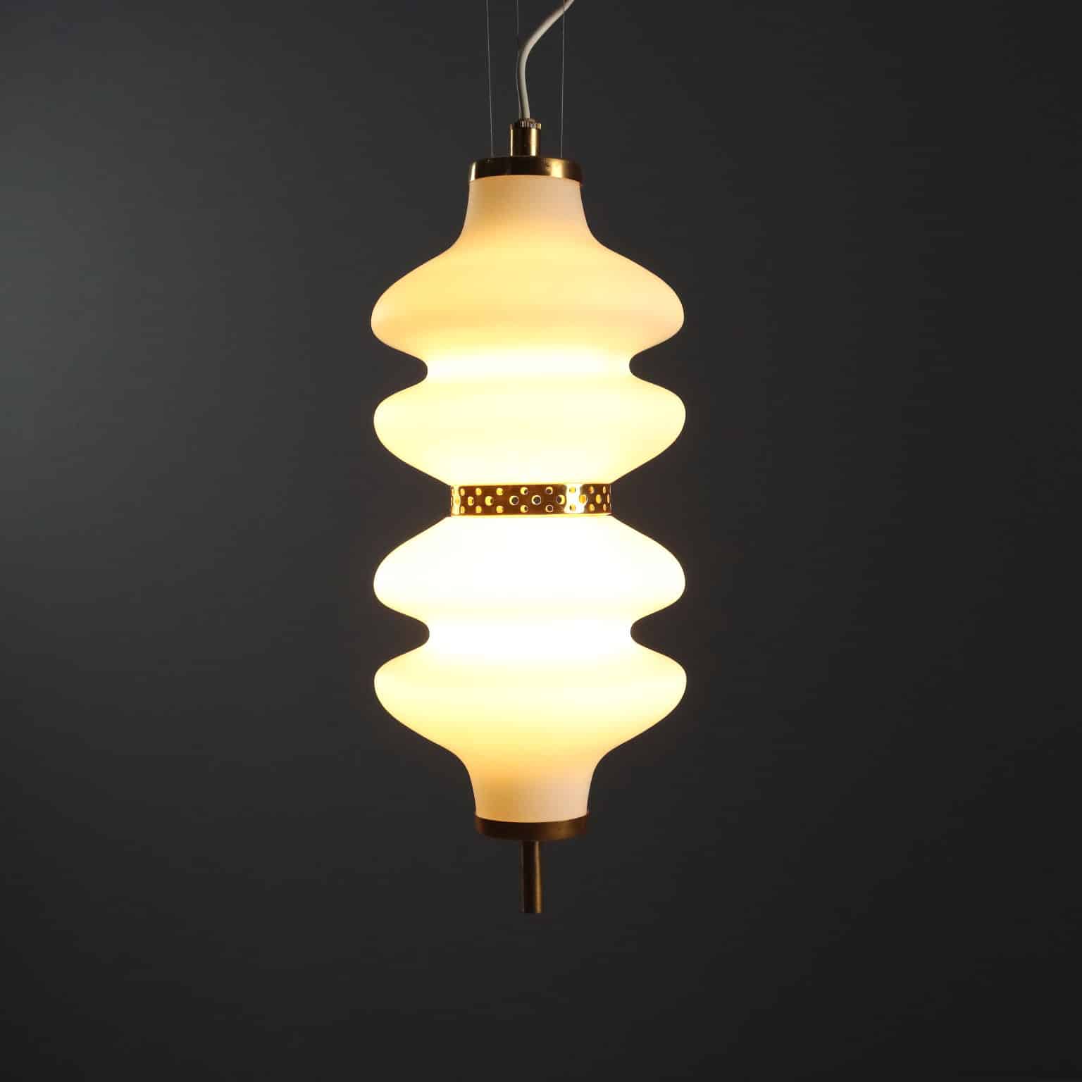 Lampada da soffitto anni ’60 di manifattura italiana in vetro lavorato con attacco e dettagli in ottone.Info & dettagli qui.