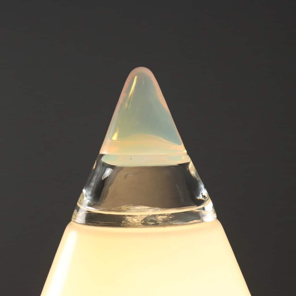 Lampada da tavolo in vetro lavorato a mano disegnata da Giusto Toso per una produzione Leucos