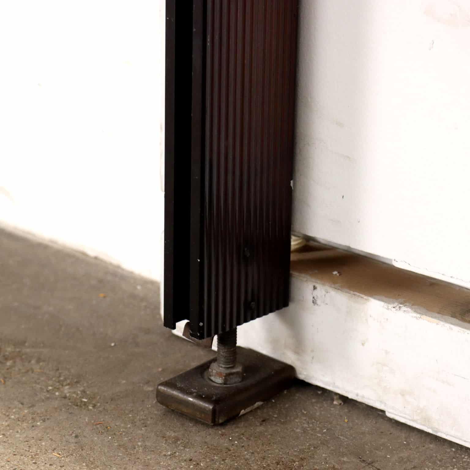 Libreria vintage anni ’60 da fissare a parete con ripiani ad altezza regolabile in legno di teak, montanti in alluminio smaltato e ottonato.