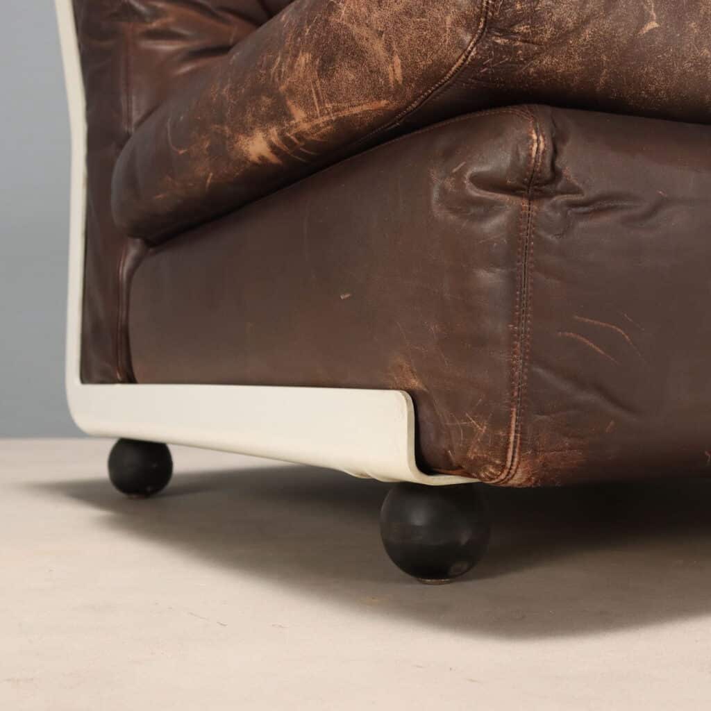 Poltrona vintage modello ‘Amanta’ con struttura in materiale plastico bianco e rivestimento in pelle originale del periodo.Codice: MOSEPO0307091