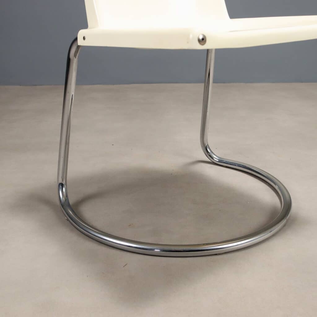 Sedia vintage modello ‘Alessia’ con gamba in tubolare cromato e seduta in materiale plastico bianco. Produzione Driade anni ’70.Codice: MOSESE0298876