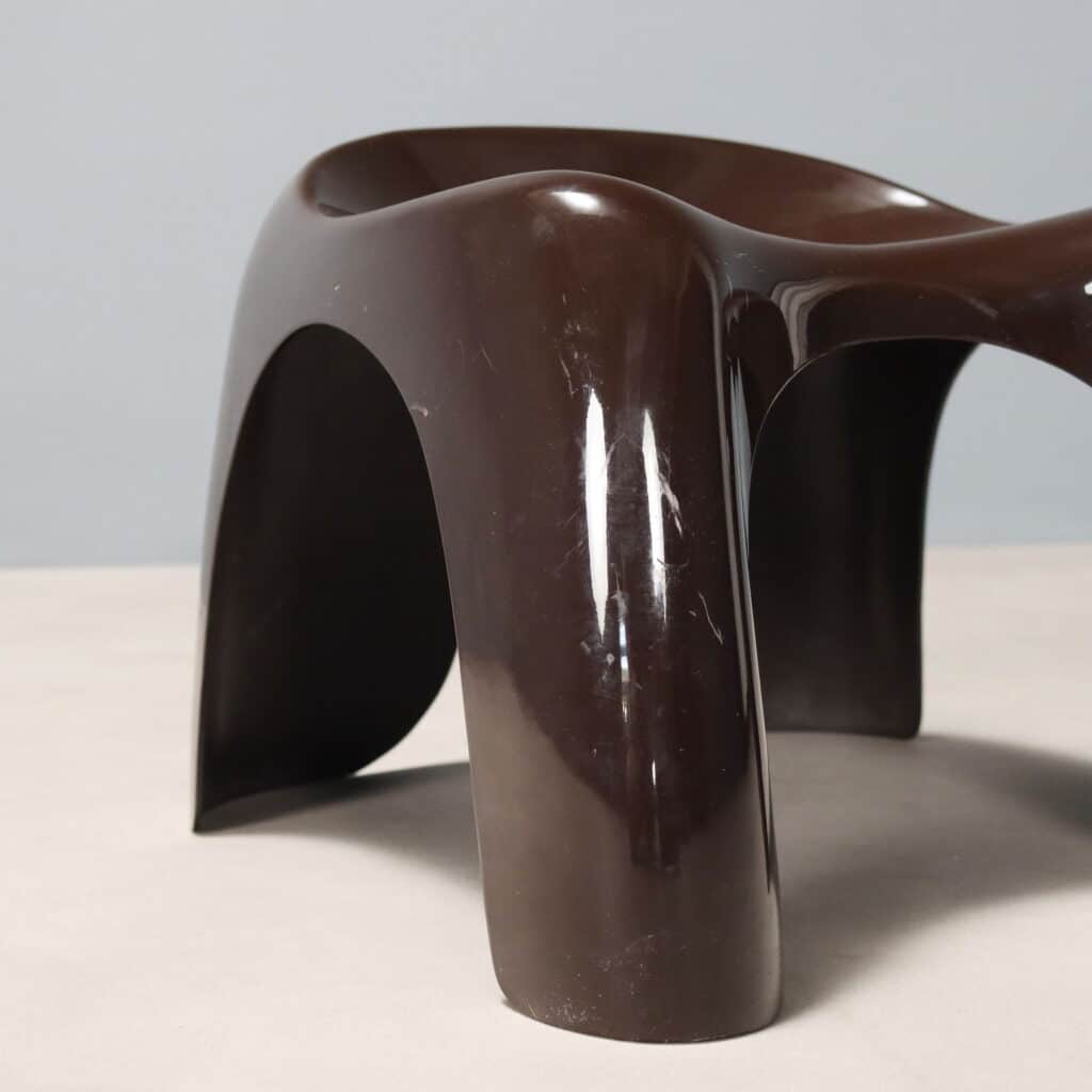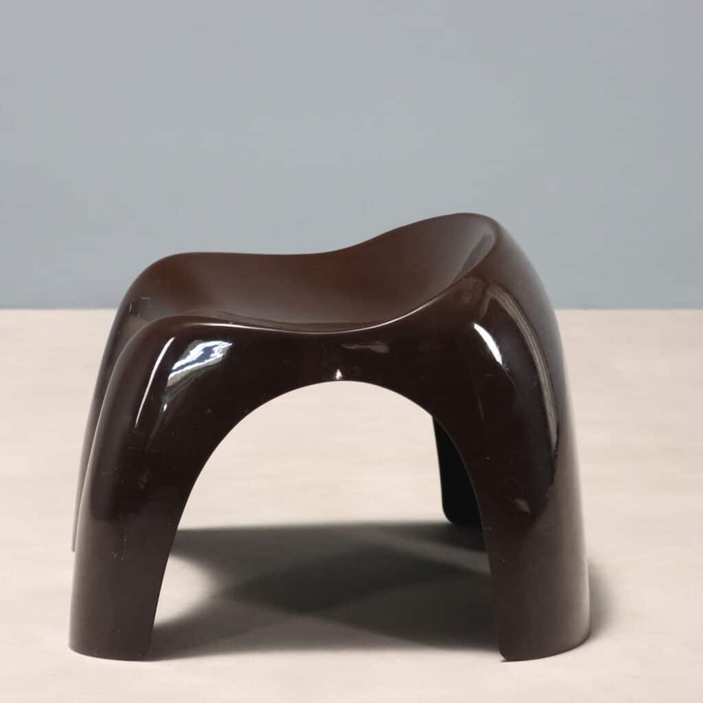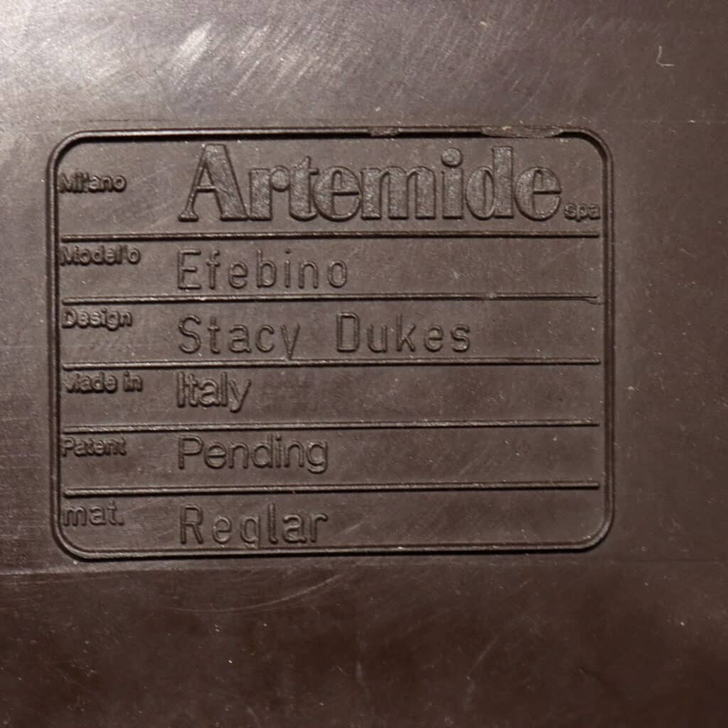 Sgabellino in materiale plastico modello ‘Efebino’ disegnato da Stacy Dukes per una produzione Artemide anni ’70. In buone condizioni generali con qualche segno del tempo.