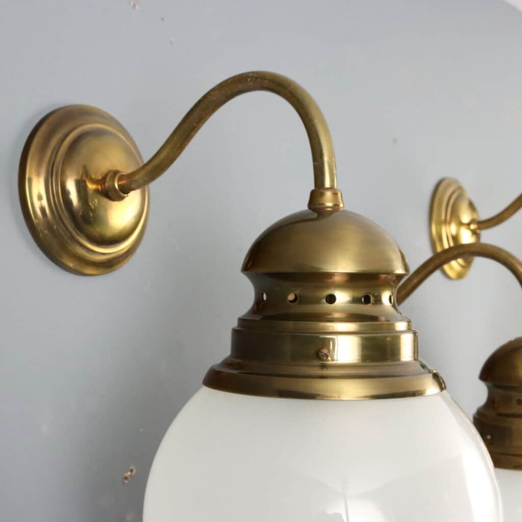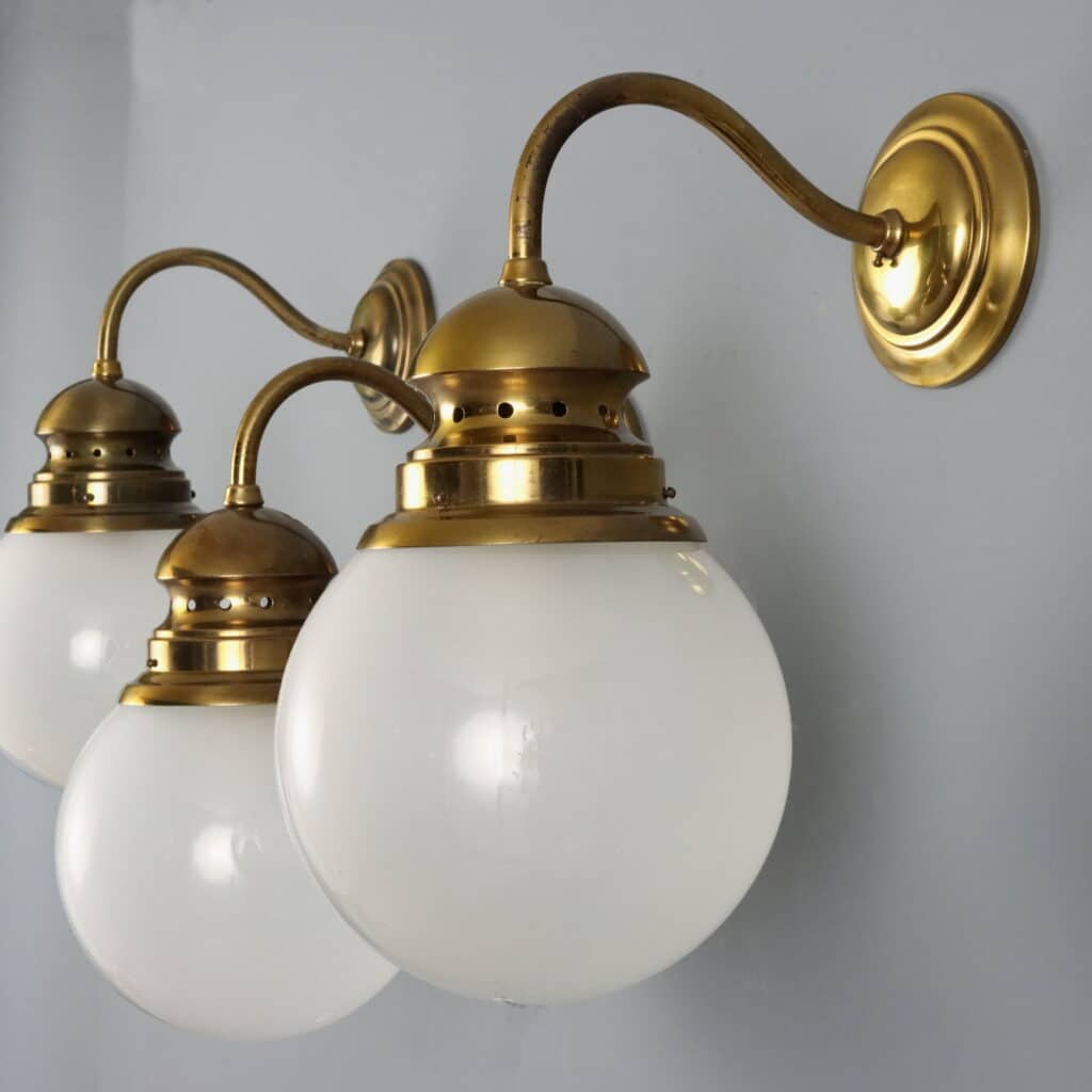 Set di lampade anni ’60 modello ‘LP1’ disegnate da Luigi Caccia Dominioni e prodotte da Azucena; in ottone con diffusore in vetro.